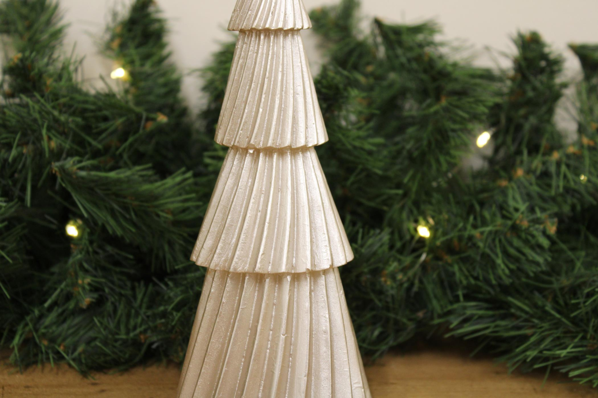 Wax moulded gold Christmas tree LED candle. Requires 2 x AAA batteries. Measurements: D8.5 x H23 x W8.5cm