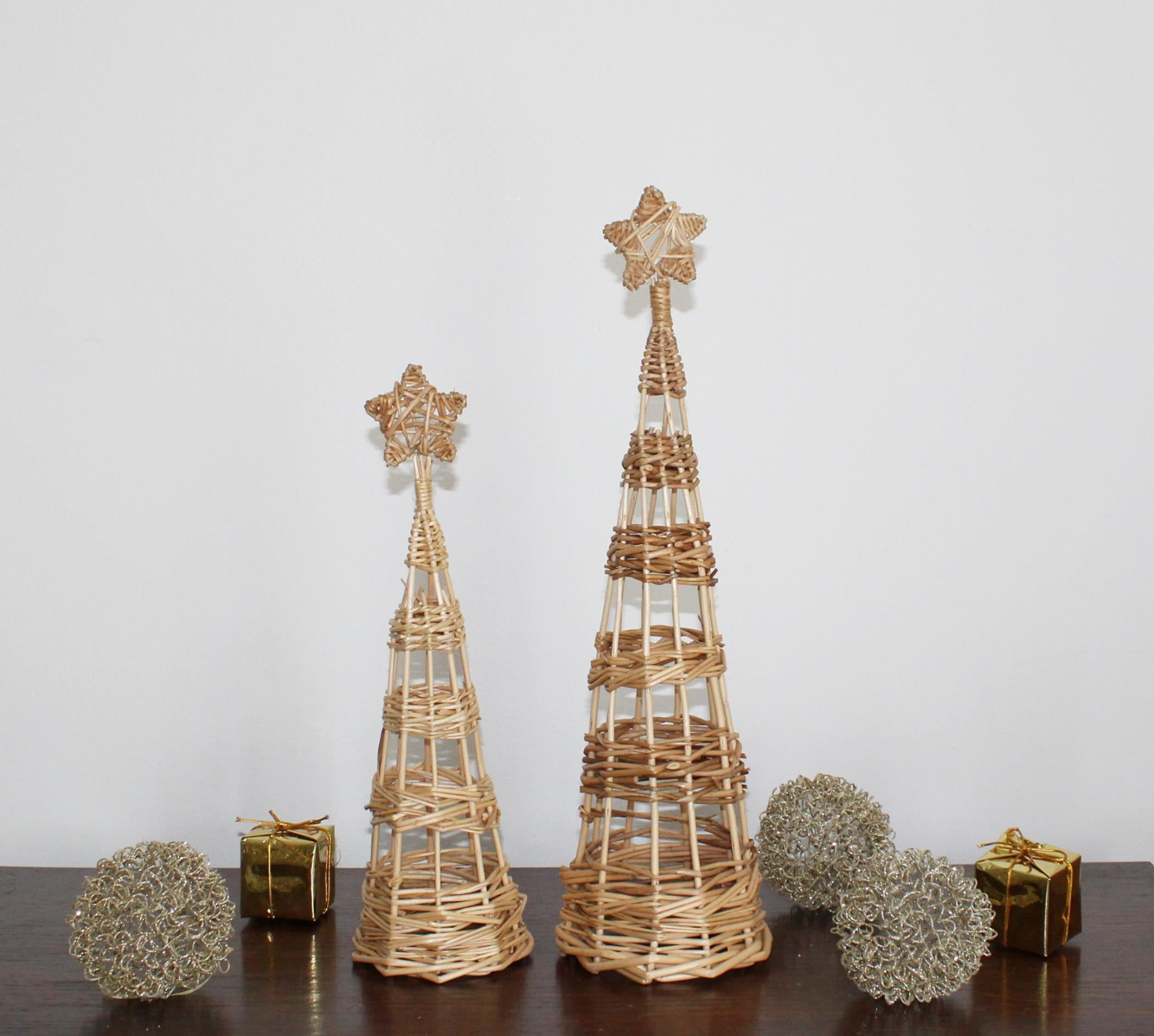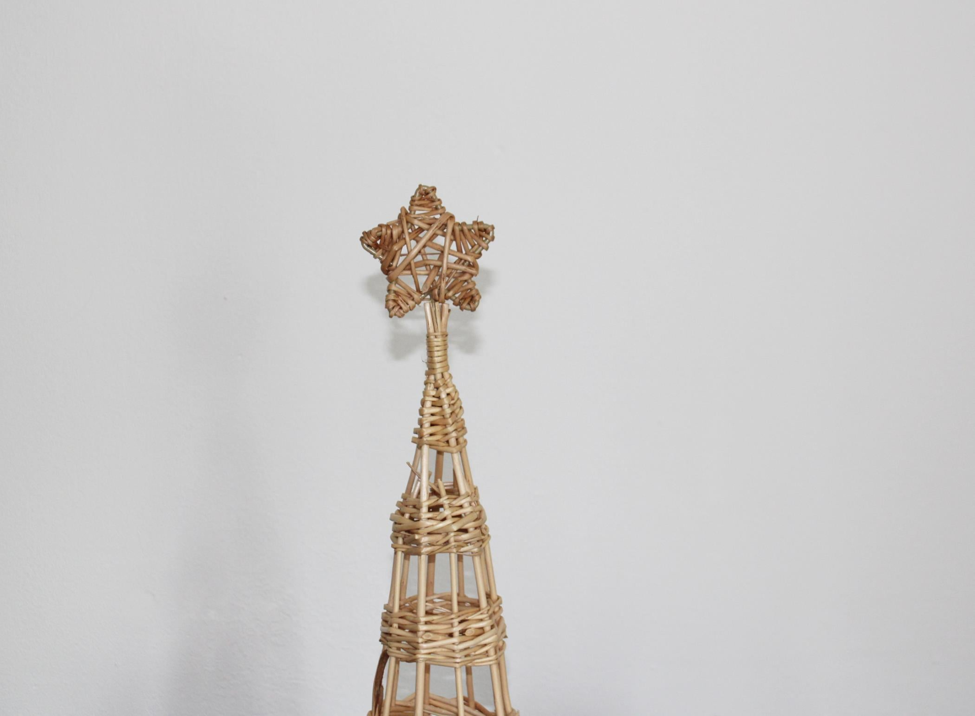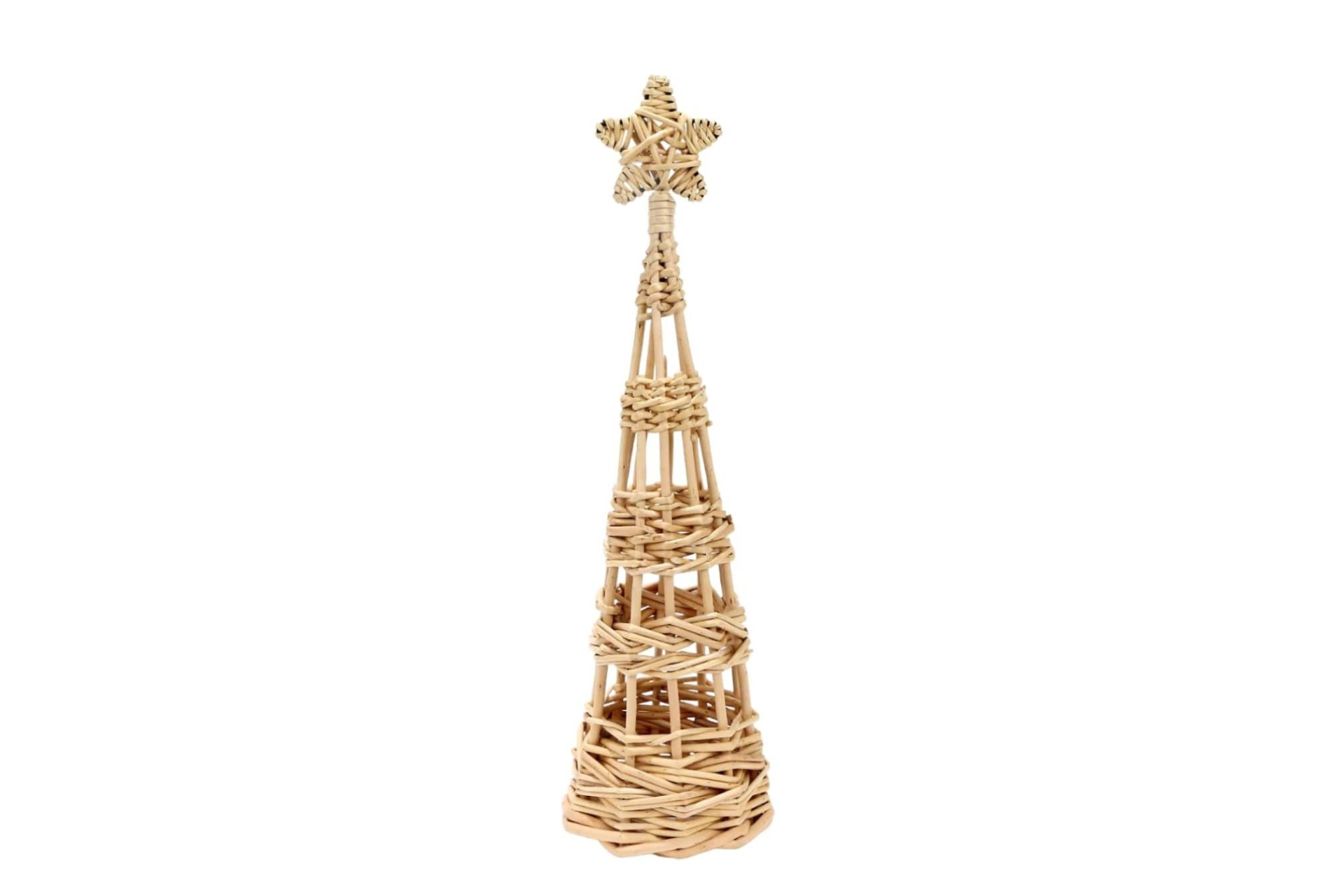 Crafted from natural rattan, this unique ornament is sure to add a touch of natural rustic charm. Featuring a wire star woven with rattan on the top, for an elegant finishing touch. Measurements: D10 x H35 x W10cm