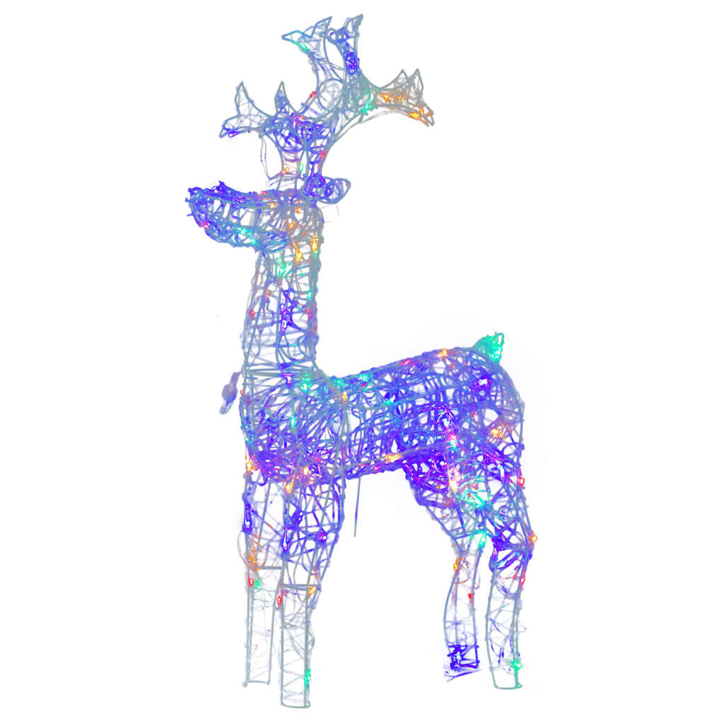 Create a stunning display in your garden or house this Christmas with these gorgeous standing reindeer decorations, illuminated by colourful LEDs! Weather-resistant material: These lighted acrylic reindeers are made of acrylic, and they can withstand humidity and rainy weather. They can also be easily cleaned with a damp cloth when needed.Energy-saving LED: These glowing reindeers are pre-lit with 90 LED lights, which are energy-saving and long-lasting.Beautiful lighting effect: These Christmas decorations are designed with lighting effect, which beautifully light up and create a magical holiday atmosphere. Note:The included USB connector is not waterproof so this part has to avoid water, but thanks to the extension cable the Christmas decoration can be used outdoors as the cable and product are waterproof.The product has a USB connector, but the certified 5V USB power source is not included.